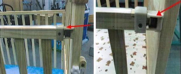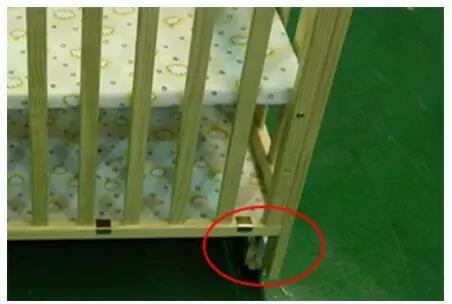 2、有些嬰兒床為了使用方便,會將旁板設(shè)計成可以下放,側(cè)翻旁板在提起時是可以自動嚙合的,但若側(cè)翻旁板提起時無法自動嚙合,可能導(dǎo)致側(cè)板意外打開,存在嬰幼兒意外跌落風(fēng)險。