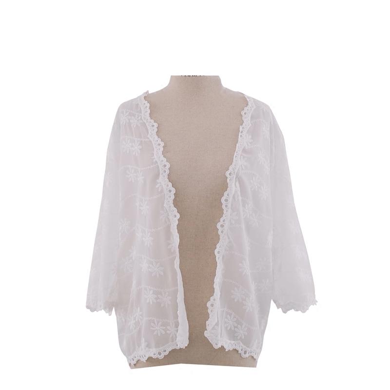 夏季網(wǎng)紗薄外套七分袖ins度假風(fēng)雪紡刺繡開衫防曬衣空調(diào)衫女