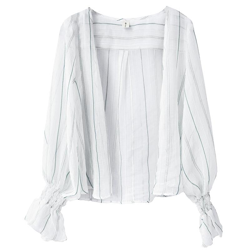 梅子熟了 文藝小清新雪紡?fù)獯铋_衫 復(fù)古燈籠袖防曬衣女2018夏新款