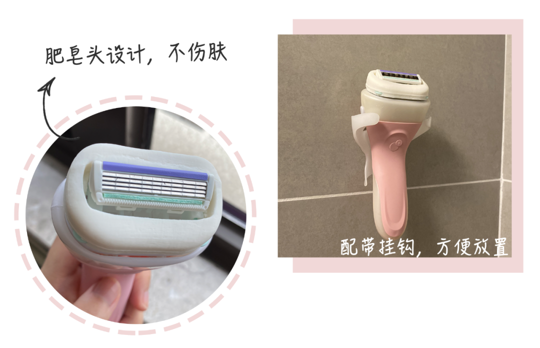 這款刮得干凈,刮頭處帶有肥皂,所以刮毛的時(shí)候沒(méi)有感覺(jué)。我用的這款是粉色的,適合中性皮,還有一款綠色的更溫和,適合敏感肌使用。
