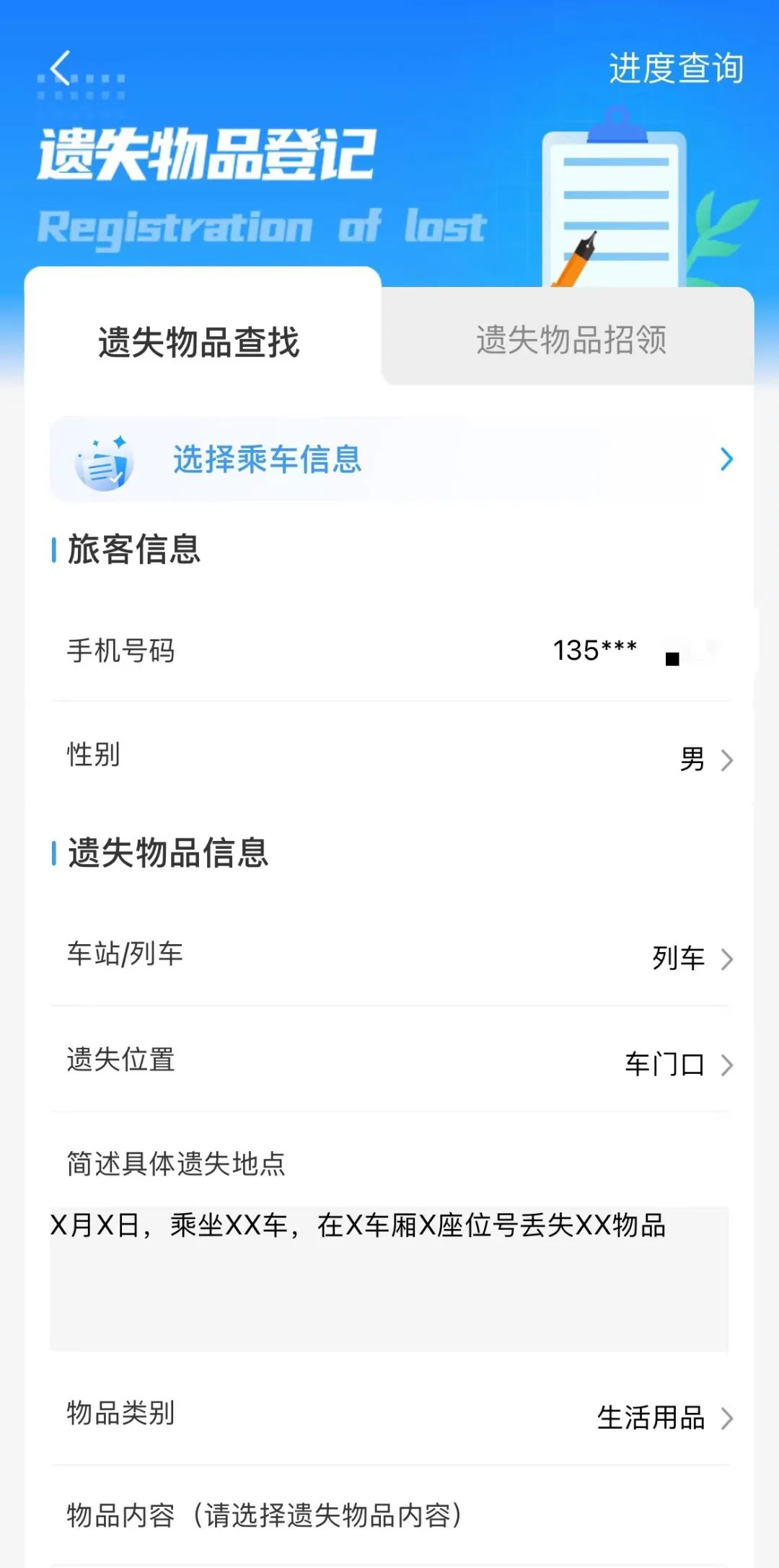 為了更準(zhǔn)確識(shí)別和尋回遺失物品,旅客盡量詳細(xì)提供乘坐列車的車次、車廂號(hào)、座位號(hào),遺失物品的位置、品牌、尺寸、顏色、材質(zhì)等基本信息,一定留好聯(lián)系方式哦!
