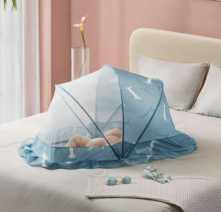 注意選擇適用于嬰幼兒的A類標(biāo)準(zhǔn)用料。如果在嬰兒床上使用,可以選擇可折疊蒙古包蚊帳。
