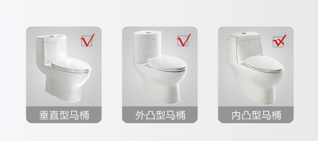 確認(rèn)馬桶的尺寸要求,形狀方面常見的是弧形馬桶,方形和圓形馬桶與目前主流的馬桶蓋形狀上不匹配。還有的馬桶的水箱和座圈之間的連接處也有凸起或較大的弧形,這會影響安裝。