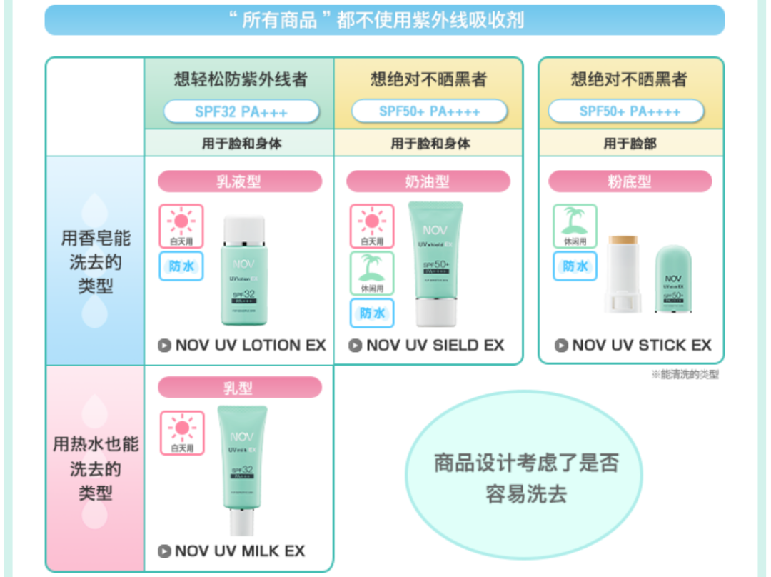 這是日本一個牌子NOV的防曬霜,雖然銷量不大,但居然也出了很多款