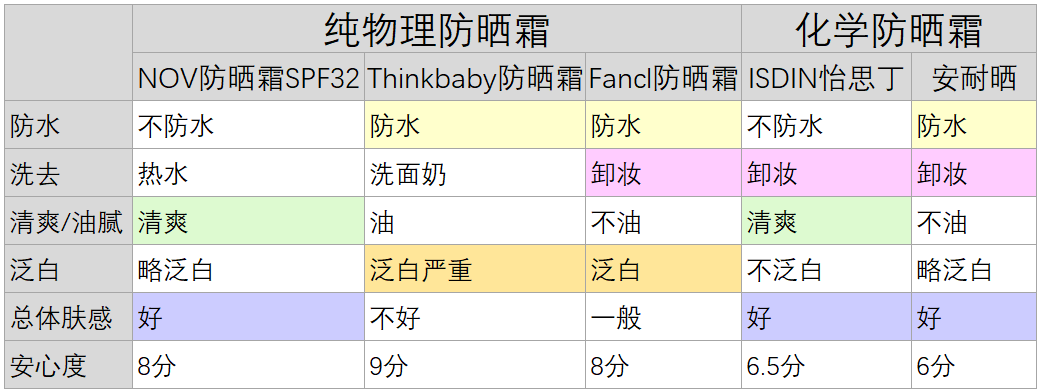 物理防曬成分--> 優(yōu)點:, 缺點:泛白,厚重、油膩