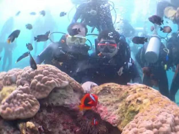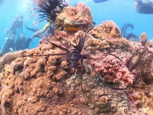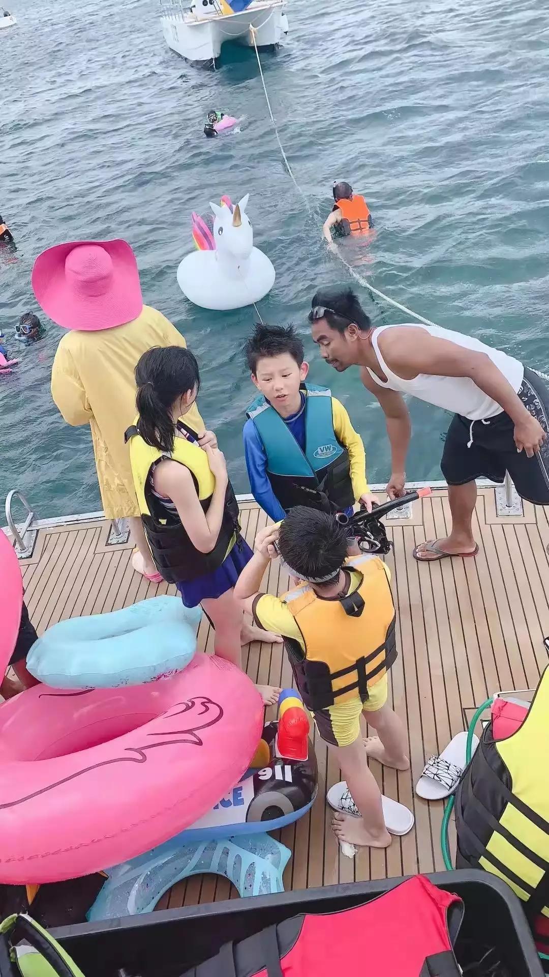 郵輪自助餐,有烤乳豬,到大海中間淺潛水,適合小孩子,不需要會游泳,穿著救生衣船上跳入海中,有人接,一人帶一個小孩,還有自助餐,所以一人650,很多潛水員帶你。
