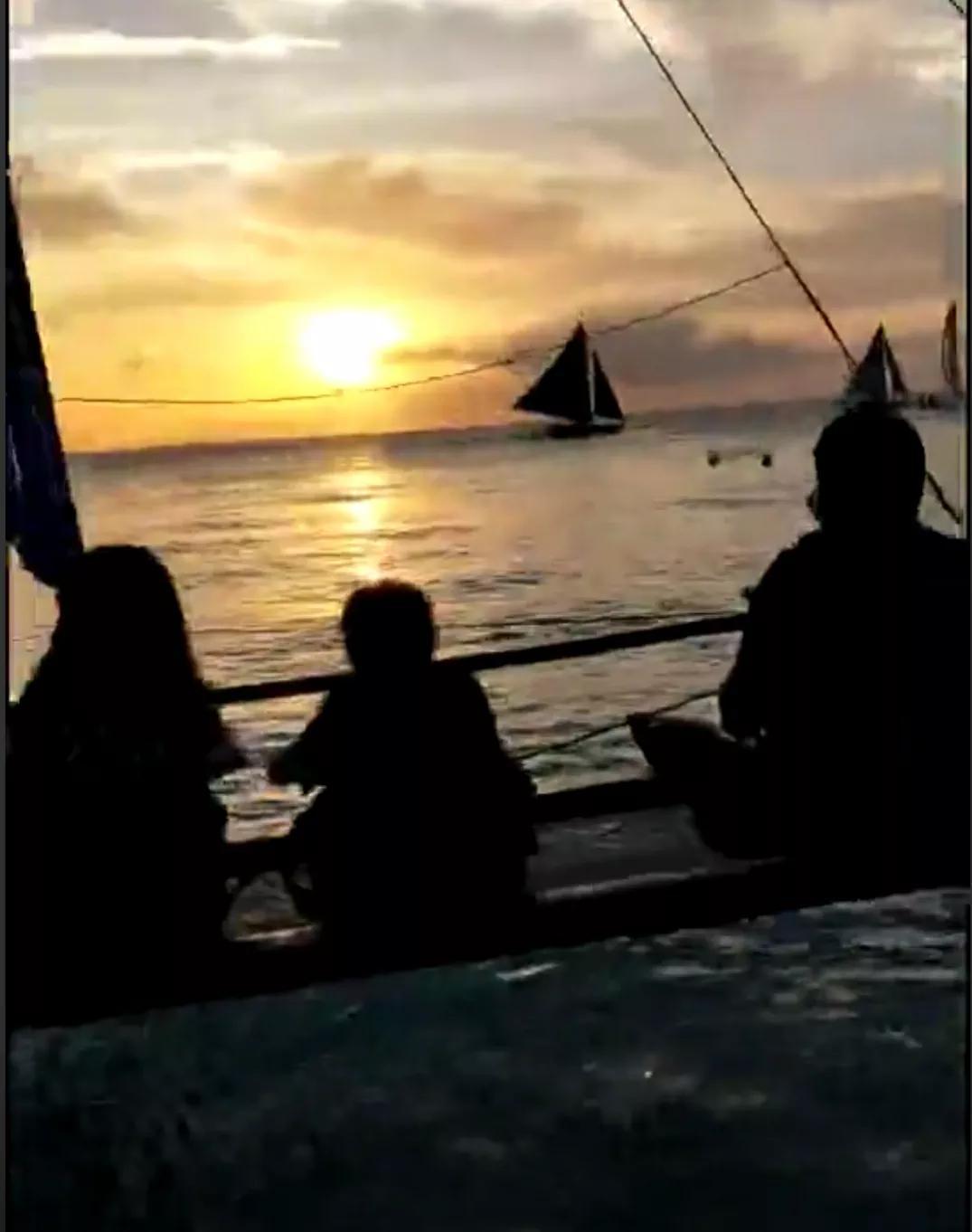 落日風帆,就是坐在船兩邊載你到海中看落日余暉,挺美的,天空大海融為一體。