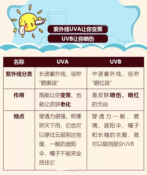 UVA比UVB的穿透能力更強,能夠直達皮膚層,對皮膚造成的短期傷害包括膚色變黑,產(chǎn)生色斑等,