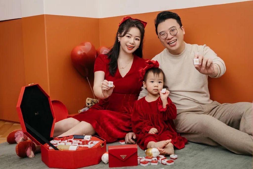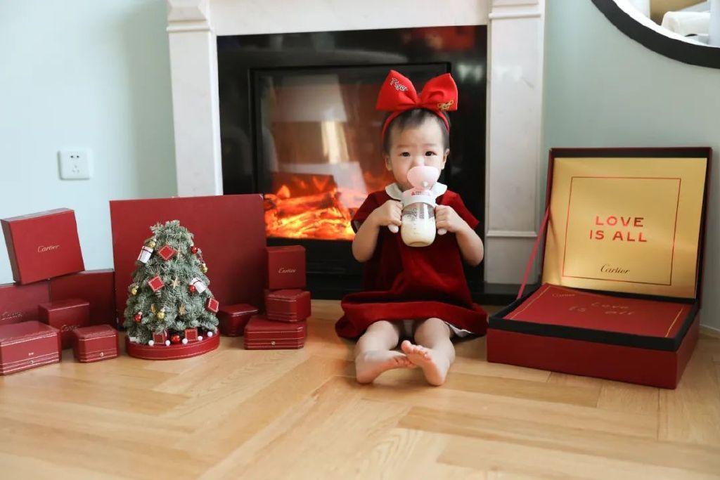 我也會根據(jù)季節(jié)讓清曳幫我設(shè)計(jì)不同顏色、款式和面料的裙子,來紀(jì)念咩咩的成長。冬天就會選擇料子厚實(shí)一點(diǎn)絲絨裙,比如這套為過年專門定制紅色母女裙,咩咩也很喜歡穿。