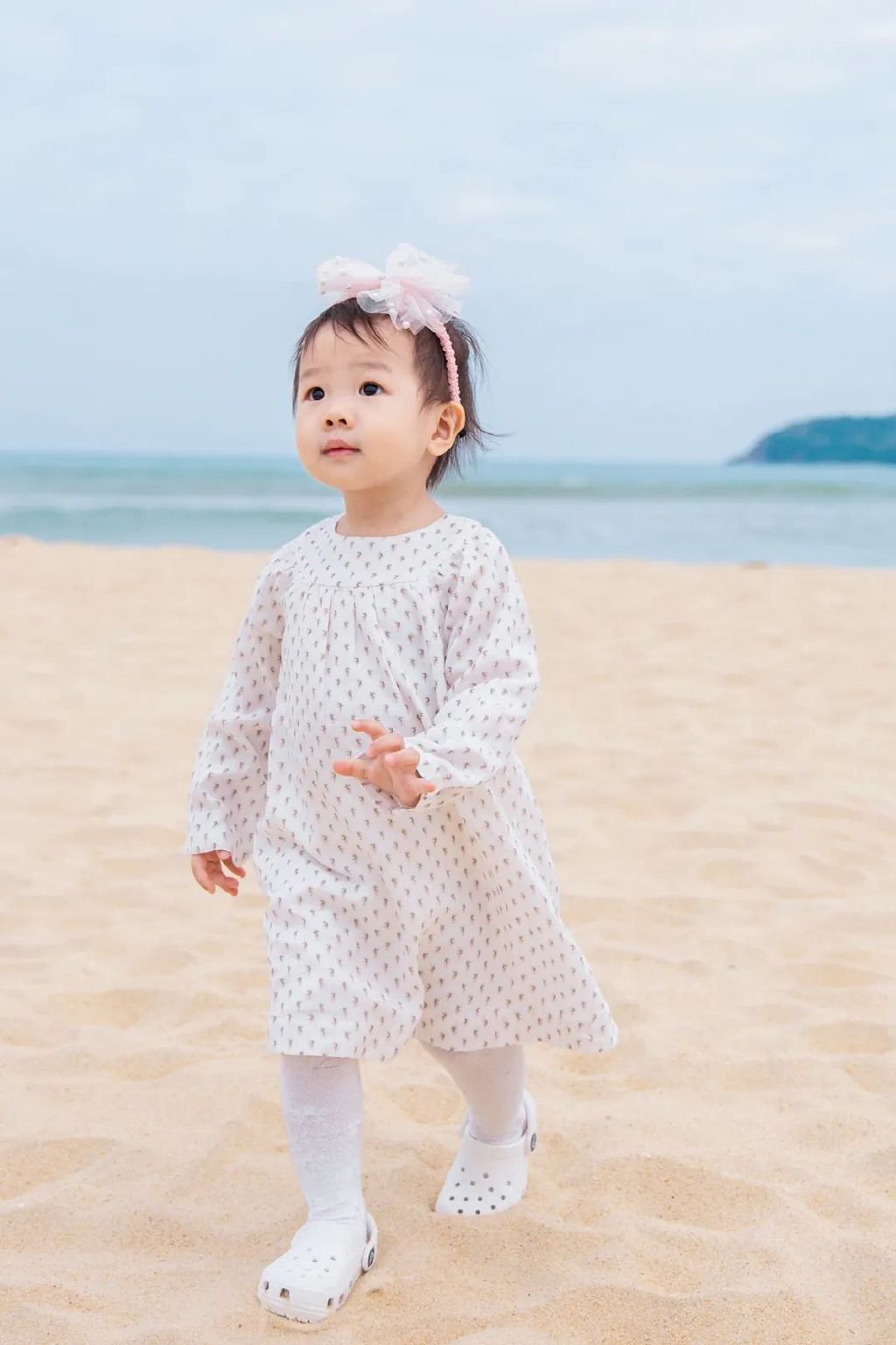 前陣子又給她買了這款白色蝴蝶結(jié)發(fā)帶,春天去踏青,搭配小紗裙可可愛愛。PS:他家的襪子咩咩也經(jīng)常穿。色彩柔和清新,冬天的打底連褲襪,夏天的薄襪都很適合小月齡寶寶。