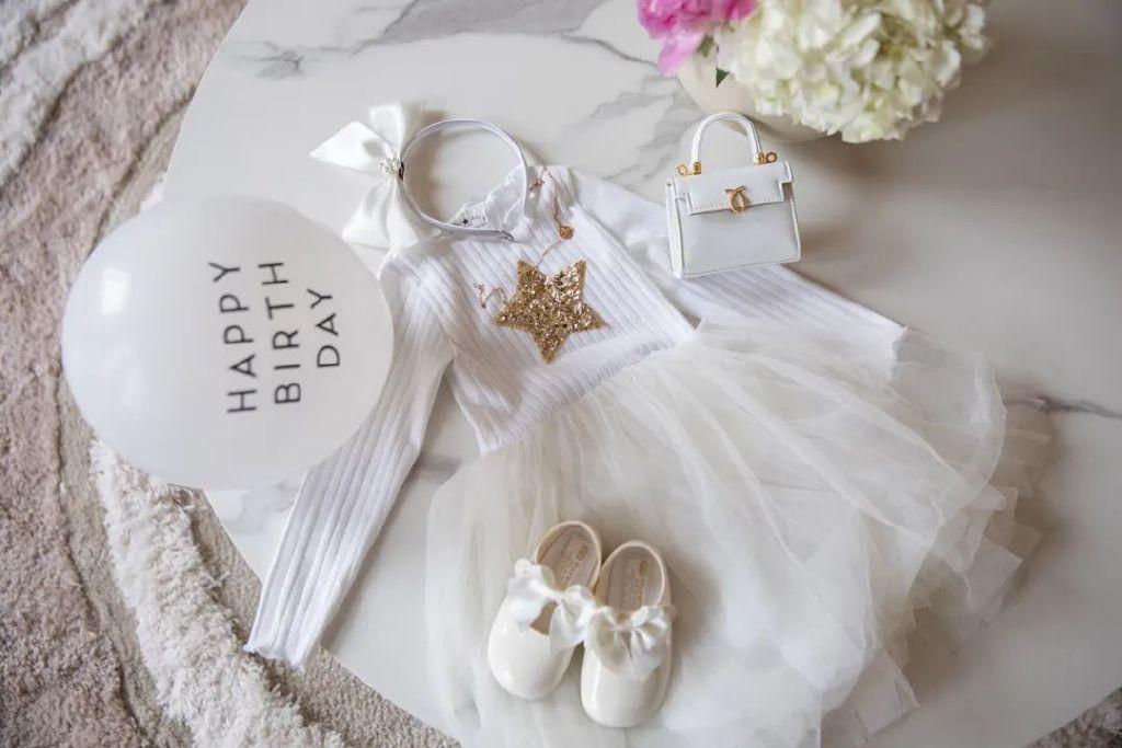 我給咩咩買過很多顏色和款式的Petite Hailey紗裙。她剛過完兩歲生日,入手了一條白色星星紗裙,搭配白色小鞋子和Launer小手袋,特別清新可愛。