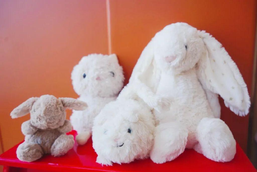 Jally Cat兔子貓咪公仔Jally Cat的兔子公仔也很出名,我給咩咩買過一個(gè)之后就入坑了。可愛的樣子摟著特別舒服。后來咩咩有次去商場,自己在玩具店里挑了一個(gè)Jally Cat的貓咪公仔,因?yàn)殚L得像一個(gè)球,還給人家起名叫“球球貓”。其實(shí)他家的兔子公仔更有名一些,但咩咩就是喜歡她的“球球貓”,走到哪都要帶著。她也喜歡拿著兔子和我玩,唱“小兔子乖乖”的歌。