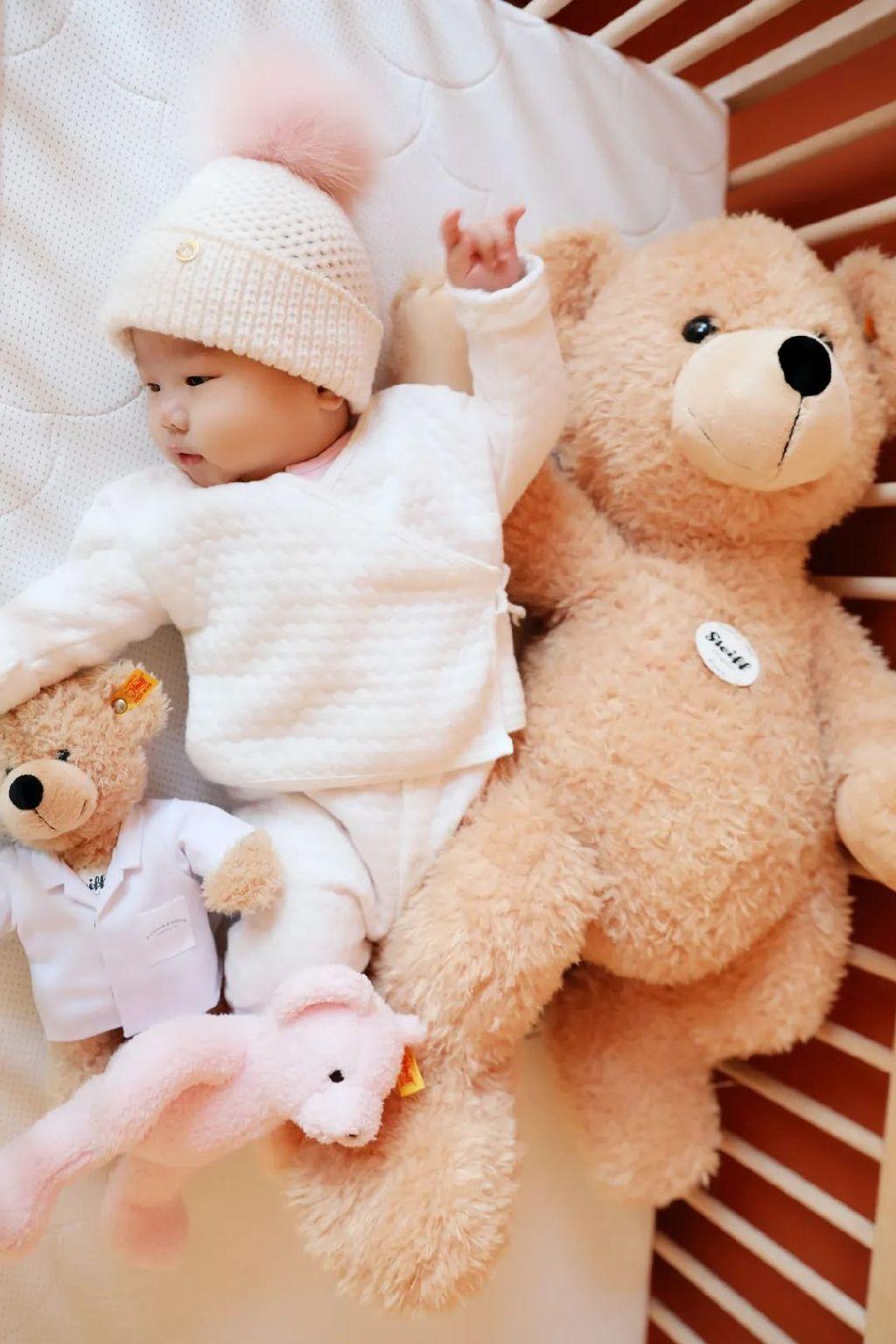 玩具篇很多人或許覺得玩具只是錦上添花,其實(shí)一些玩具對寶寶有著刺激視覺、觸覺、大腦發(fā)育的功能。不少還能起到安撫作用,很有益處。因此在玩具的選擇上,精挑細(xì)選也是很有必要的。Steiff小熊范主當(dāng)時(shí)給咩咩買了不少陪伴玩具。這只Steiff小熊就是其中之一。Steiff是一個(gè)有150年歷史的德國品牌,十分有收藏價(jià)值。他家有名的就是泰迪熊。這只My First Steiff左耳處有標(biāo)志性的“金耳扣”商標(biāo),粉粉嫩嫩,當(dāng)時(shí)對于剛剛出生的咩咩來說,很有新鮮感。