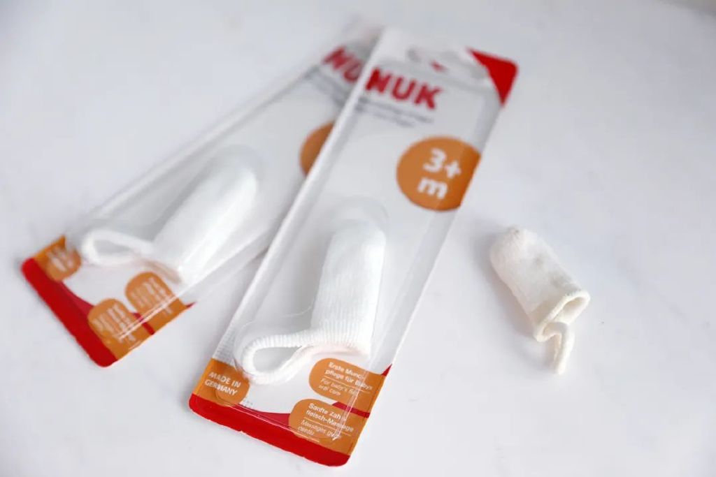 △ 口腔、鼻腔護(hù)理新生寶寶容易嗆奶、喝奶久了也容易引起口腔細(xì)菌,因此口腔和鼻腔也需要好好護(hù)理。NUK指套咩咩剛出生的時(shí)候,我就買了這個(gè)NUK指套牙刷給她清潔口腔,大人戴在手上給寶寶清潔牙床。指套前面有牙刷刷毛一樣的形狀,乳膠材質(zhì),媽媽套在手指上,在嘴巴里輕輕刷兩圈,能很給寶寶清潔口腔細(xì)菌了,很方便。
