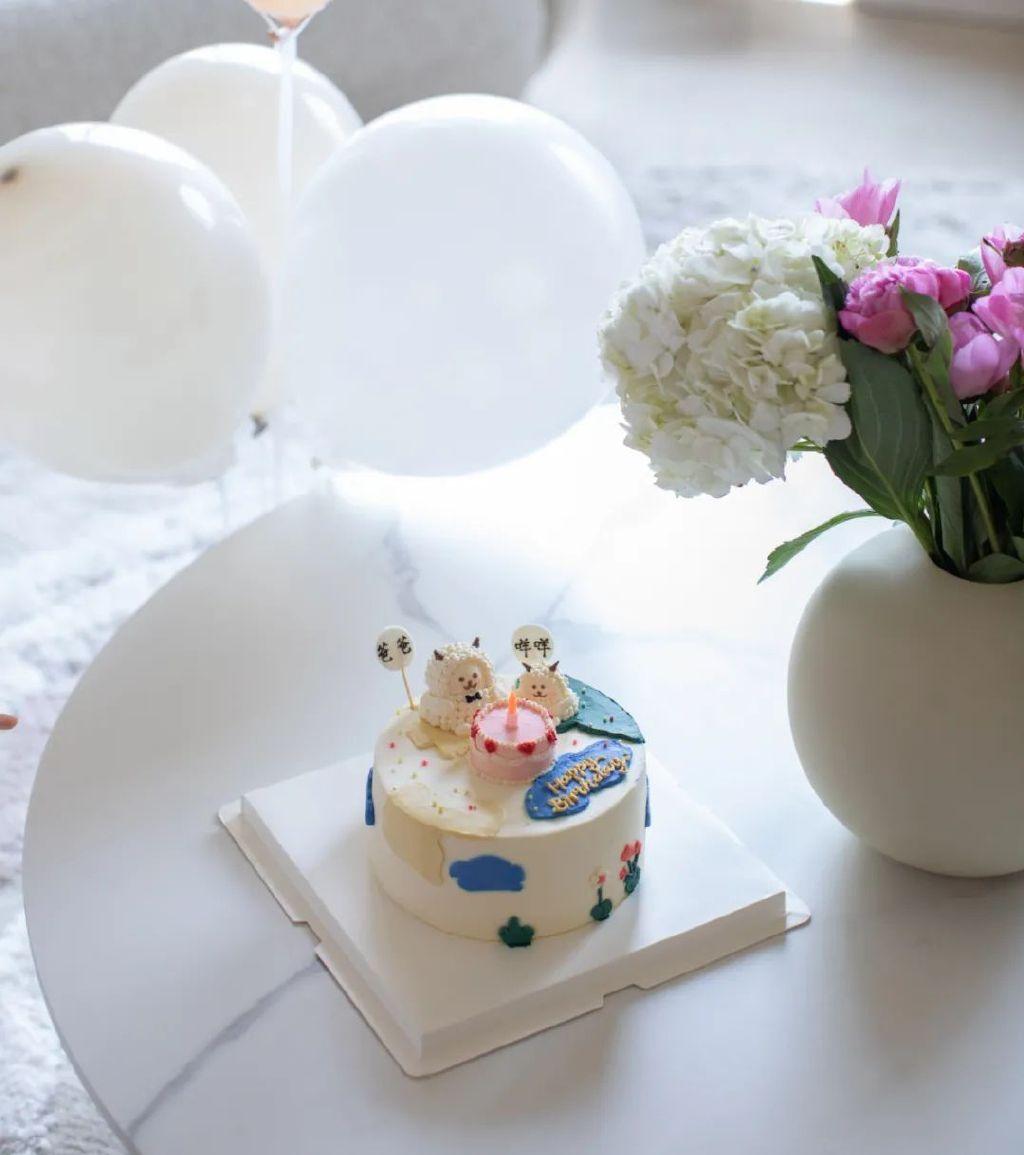 她過生日的時(shí)候,我們都會準(zhǔn)備一個(gè)小羊蛋糕。巧合的是,咩咩和Boy A是同一天生日。當(dāng)年她出生比預(yù)產(chǎn)期提前了幾天,趕在和爸爸同一天,好像是上天注定的緣分。所以這次的蛋糕,也是一只咩咩一只爸爸,不過自從有了她,老父親就永遠(yuǎn)成了配角。