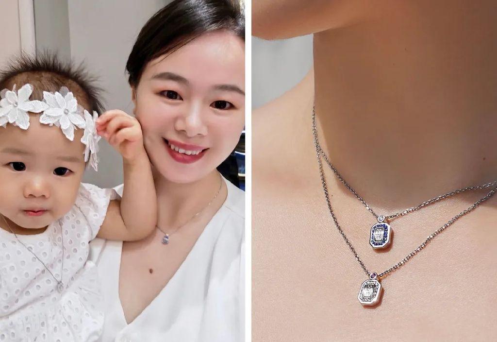 朋友說很像一個(gè)小盾牌,像新生寶寶與媽媽的守護(hù)盾牌,是新生兒與媽媽一生的“守護(hù)盾牌”,相守圓滿與幸?!,F(xiàn)在咩咩還小,戴不了項(xiàng)鏈,所以暫時(shí)可以讓媽媽先戴著。