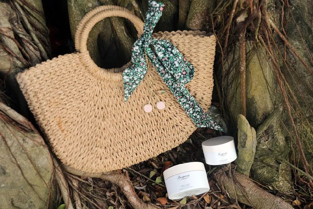 現(xiàn)在咩咩長大了一點(diǎn),開始學(xué)著我的樣子,給自己涂涂抹抹。前陣子我們?nèi)ザ燃?,她就拎著自己的Bonpoint草編包,里面裝上她的面霜和潤膚乳,像個(gè)小大人似的。
