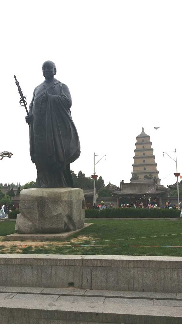 古人曾留下“驅(qū)山晚照光,雁塔晨鐘在城南”的詩句。作為關(guān)中八景之一的大雁塔高高聳立在西安市南郊慈恩寺內(nèi),距市中心約4公里,是我國的佛教名塔之一。按照印度佛教傳說,當(dāng)初佛教有大乘與小乘兩派,小乘佛教不忌葷腥。有一天,正是菩薩布施日,一座小乘寺院的和尚卻買不到肉下飯。這時天空中一群大雁飛過,一個和尚望著雁群自言自語:“今日增房無肉吃,大慈大悲的菩薩一定不會忘記這是什么日子?!痹捯粑绰?,領(lǐng)頭的大雁便折翅墜地。于是全寺和尚大驚失色,認(rèn)為這定是菩薩顯靈。他們就在大雁墜地處建造石塔,并戒絕葷腥,改信大乘佛教。因此,佛塔又稱大雁塔。 玄奘就是慈恩寺內(nèi)的第一任住持方丈。