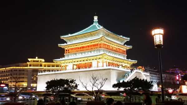 18:00游覽結(jié)束回返西安市內(nèi),出華清池馬路對面就是車站,仿佛打仗一般成功登陸914路車,站了一個半小時到達(dá)西安火車站。在市內(nèi)游有一點(diǎn)比較好,想去哪個景點(diǎn)就隨意找個公交車站,看站牌肯定會有一班車途徑這個景點(diǎn)的。鼓樓下車,夜晚的鐘鼓樓比白天要美的多!燈火通明五光十色,在喧囂的車海、鼎沸的人聲中靜怡的矗立在那里,讓人沉迷感嘆。當(dāng)然,鼓樓后面的回民街更加讓人迷醉,各種美味的小吃,干果,點(diǎn)心,飲品……一天時間吃不完。 鐘樓和鼓樓是古代中國城市的特有建筑。鐘與鼓本是中國早出現(xiàn)的打擊樂器,它的誕生至少有3000年以上的歷史。初作為祭禮、朝儀、娛神中的禮器和樂器。大約自春秋時期,也就是公元前八世紀(jì)開始用于軍事指揮。古代中國城市兼有軍事城堡性質(zhì),除城市四周構(gòu)筑城墻,挖掘城壕,設(shè)置吊橋外,與之配套的還需要在城市中心修筑鐘鼓樓作為指揮中樞。平時以晨鐘暮鼓報告時辰,定時啟閉吊橋,緊急狀態(tài)是用以報警戒嚴(yán),指揮城防。這種嚴(yán)密的城市防御系統(tǒng)在明代發(fā)展到頂峰。西安是明代西北軍政重鎮(zhèn),它的鐘樓和鼓樓無論從建筑規(guī)模、歷史價值或藝術(shù)價值各方面衡量,都居全國同類建筑之冠。