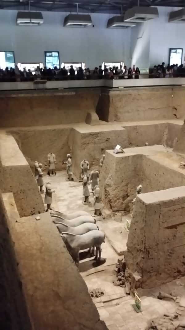 秦兵馬俑,在古今中外的雕塑是上是的,它惟妙惟肖地模擬軍陣的排列,生動的再現(xiàn)了秦軍雄兵百萬、戰(zhàn)車千乘的宏偉氣勢?,F(xiàn)在已發(fā)掘出三個俑坑,每個俑坑中都有兵馬俑,共八千多個。一號坑多,兵馬俑近六千多個。