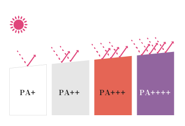 PA —— 產(chǎn)品對(duì)于UVA的防護(hù)能力(+號(hào)代表防御強(qiáng)度,加號(hào)越多代表防御強(qiáng)度越大)。