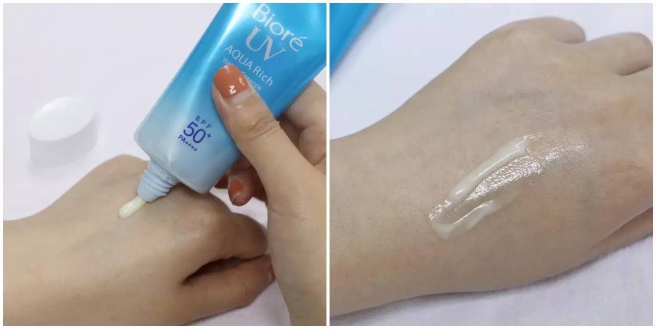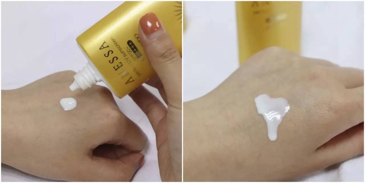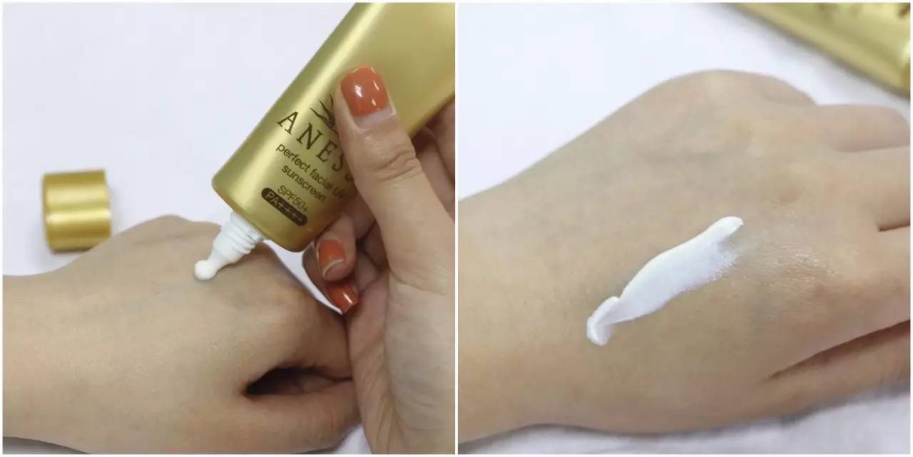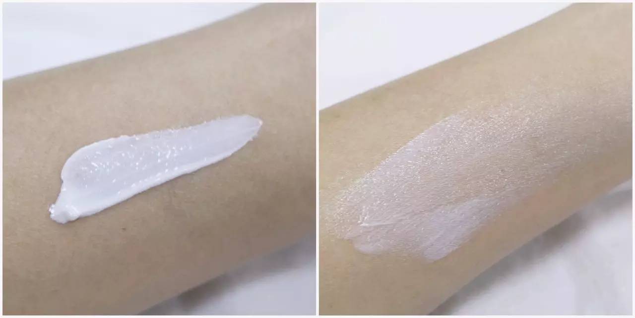 比起小金瓶,這款管狀的防曬質(zhì)地相對(duì)厚重,擠出來(lái)是白色的乳霜狀,但涂在手上絲毫不黏膩,而且有輕微潤(rùn)色果,能提亮膚色,據(jù)說(shuō)還能防暈妝(有待考證)。這款抗紫外線能力強(qiáng)!