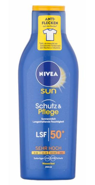 2018年以及2019年的兩次防曬霜測評中,妮維雅另外一個適用于成人和6歲以上兒童用的系列防曬霜“呵護防曬乳液”(Nivea Sun Schutz Pflege Sonnenmilch)SPF 50+和SPF 30都扛揍,連續(xù)兩年獲得好評。