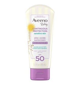 另外一款,艾維諾純物理防曬“寶寶持久保護敏感肌膚防曬乳 SPF 50“(Aveeno Baby Continuous Protection Sensitive Skin Zinc Oxide Sunscreen Lotion, SPF 50)在EWG性評估中被評為好的“1級別”。