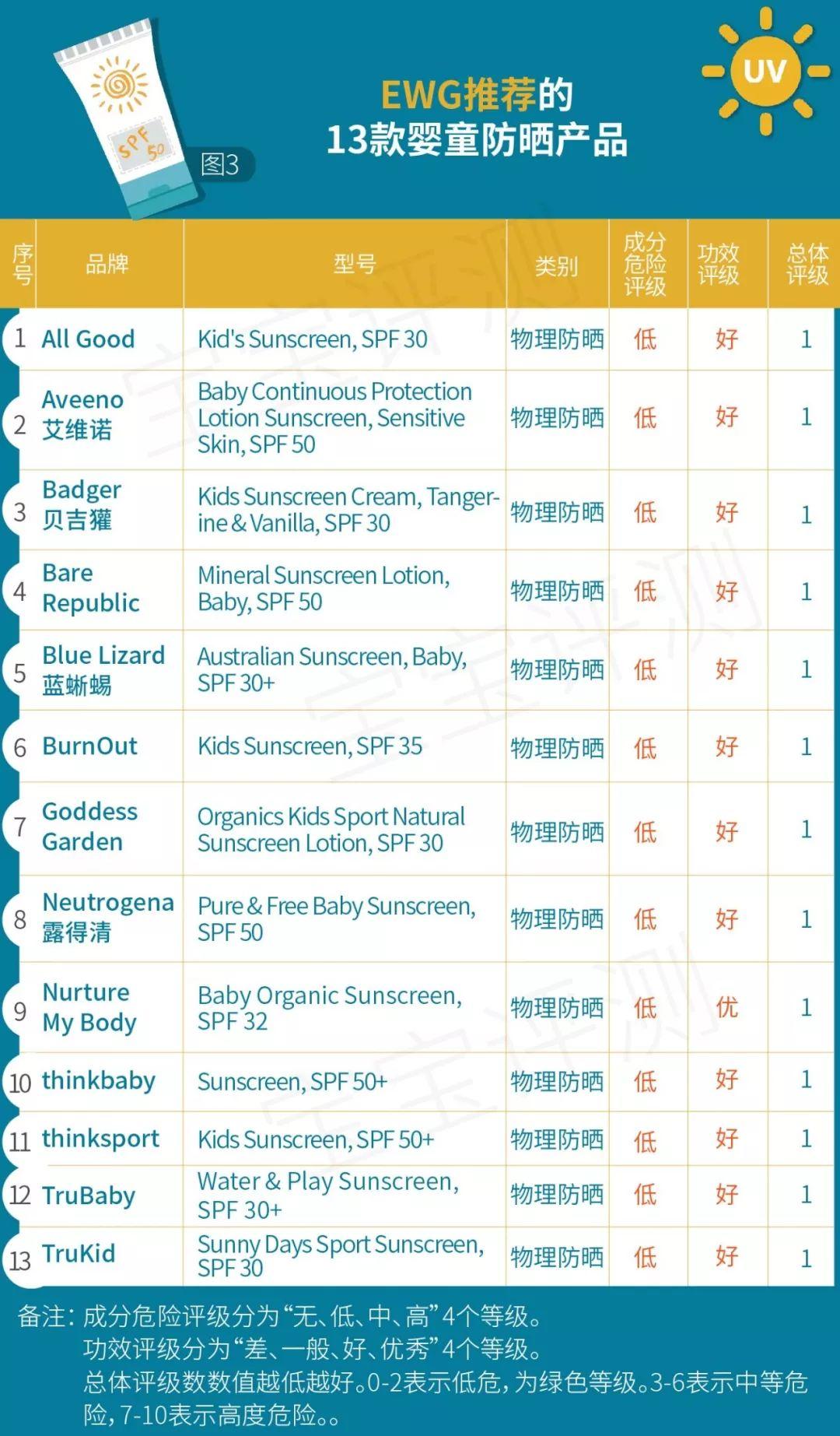 6歲以下寶寶皮膚細膩敏感,對性要求比較高。大家可以參考美國EWG的成分評級: