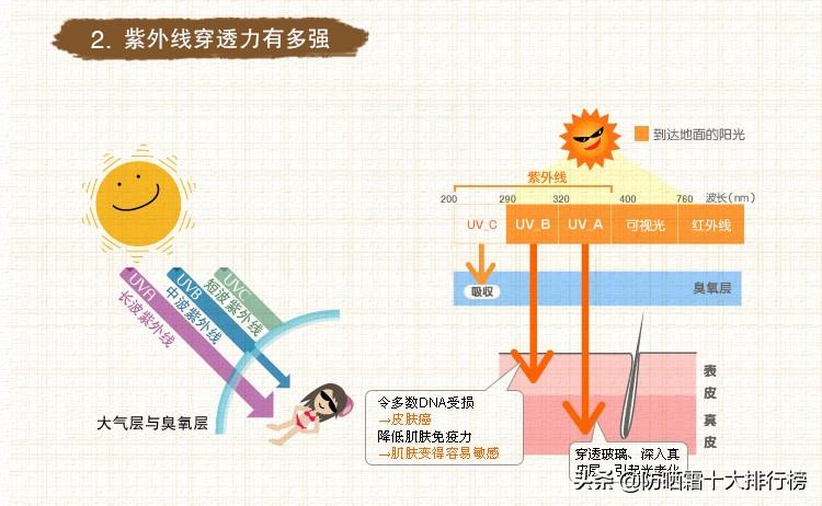 那防曬呢,首先當(dāng)然就是要防曬傷,第二就是防曬黑。而三種UV光之中呢,能量強(qiáng)的uvc,大多都被臭氧層給過濾掉了;