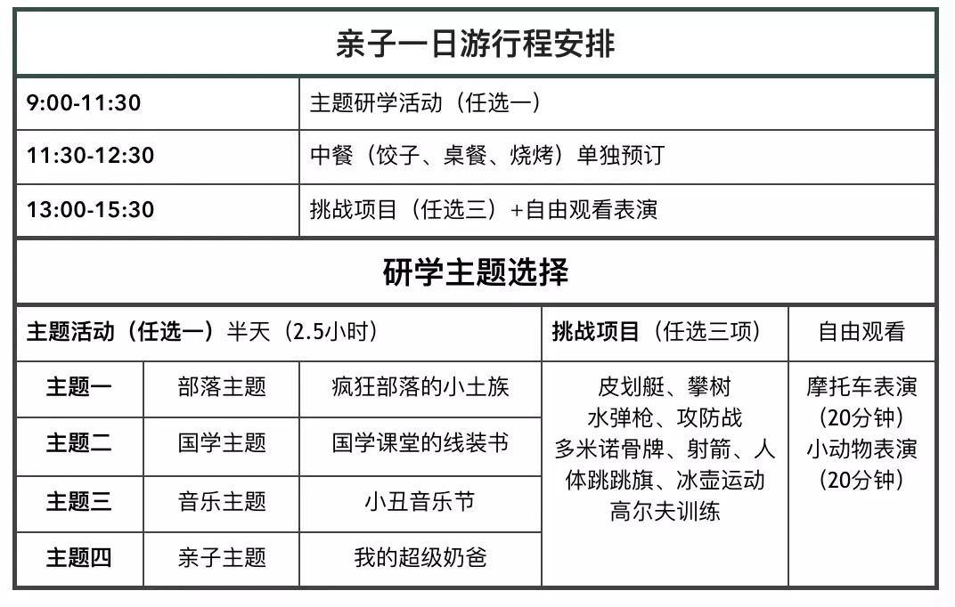 主題親子游:40人1個工作人員(半天活動),半天自由