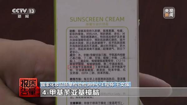 化妝品質量檢驗檢測中心工程師 王文強:其中一款產(chǎn)品防曬劑組分檢測結果與標簽標注不一致,未檢出標簽成分(表)標識的防曬劑組分4-甲基芐亞基樟腦。4-甲基芐亞基樟腦是主要防御紫外線UVB的防曬劑,屬于化學防曬劑,產(chǎn)品標注了卻未檢出可能會降低產(chǎn)品的防曬果。