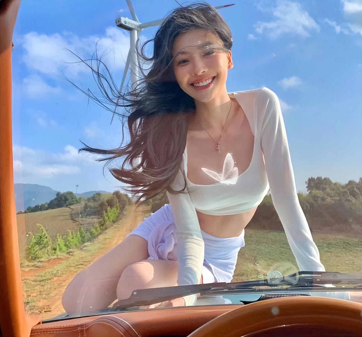 在另一張照片中,易夢玲趴在車窗上,人從車窗戶口伸了出去。給我們展現(xiàn)了一個(gè)性感的后背,從后面看,她的身形曲線極美,腰上和腿上都沒有多余的贅肉。