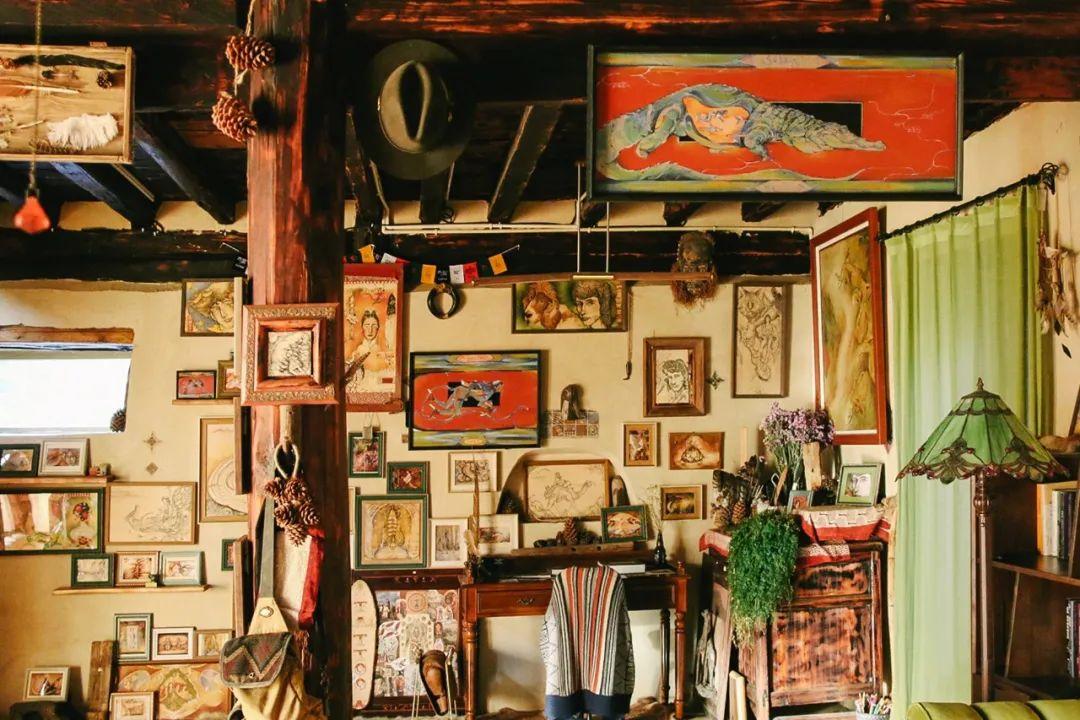 祎凡母女造了一間自然建筑,屋子里掛滿了她的畫