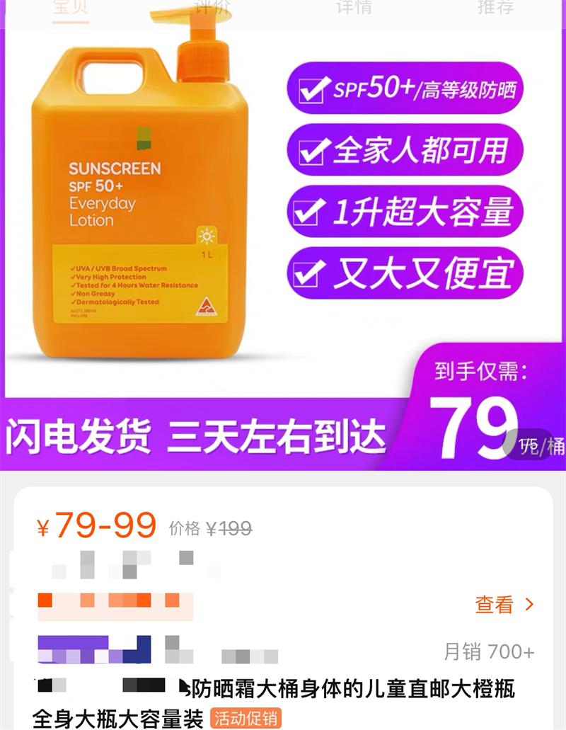 △ 網(wǎng)購平臺(tái)售賣的桶裝防曬霜