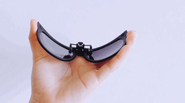 開車前,只要將夾片像這樣「一按一夾」扣在眼鏡上。