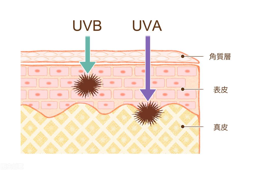 造成人體皮膚傷害的紫外線可以分為兩類,一類是VUA,一類是UVB。