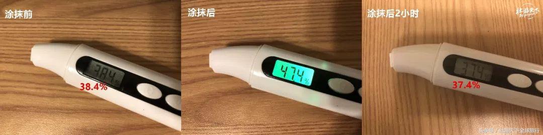 看到測試結果的小編是崩潰的:為什么還會有越抹越干的乳液啊!很可以看到檢測數(shù)據(jù)從開始的40.3%降到了39.1%,2小時后更是進一步脫水到了37%。小編甚至都在懷疑這個數(shù)據(jù)是不是順序錯了。。。