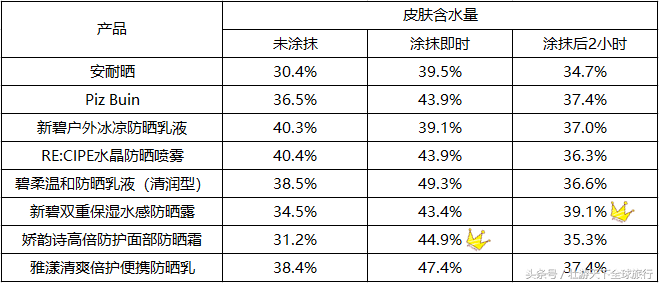 讓我們再用一張表格總結一下這一次防曬霜的保濕測評結果吧。