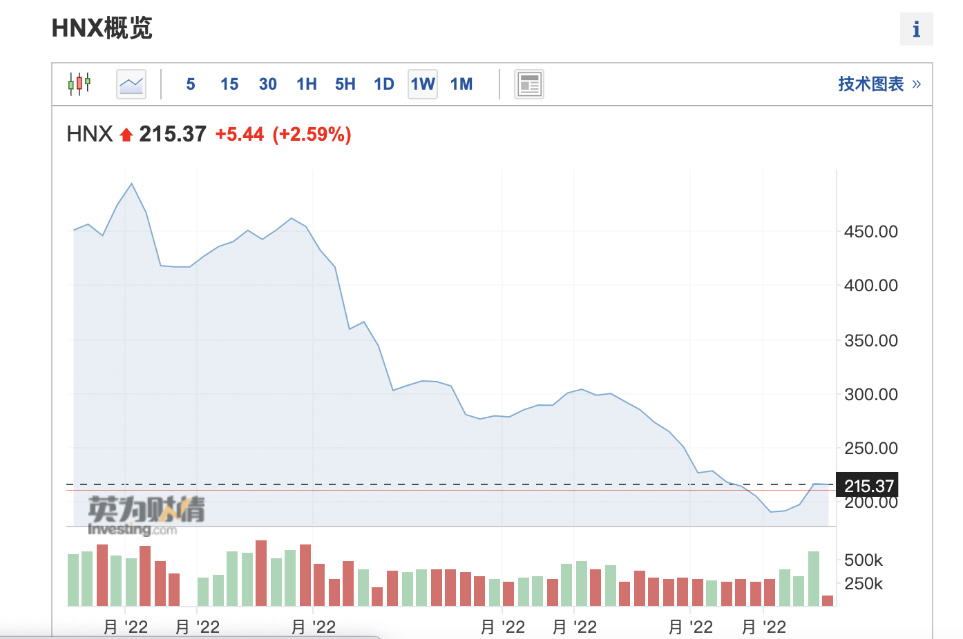 值得一提的是,越南河內(nèi)指數(shù)2021年以203.12點(diǎn)開盤,收于473.99點(diǎn),全年漲幅為133.35%,漲幅居前列;而今年一度抹去去年全部漲幅,12月8日收盤價(jià)報(bào)215.37點(diǎn)。
