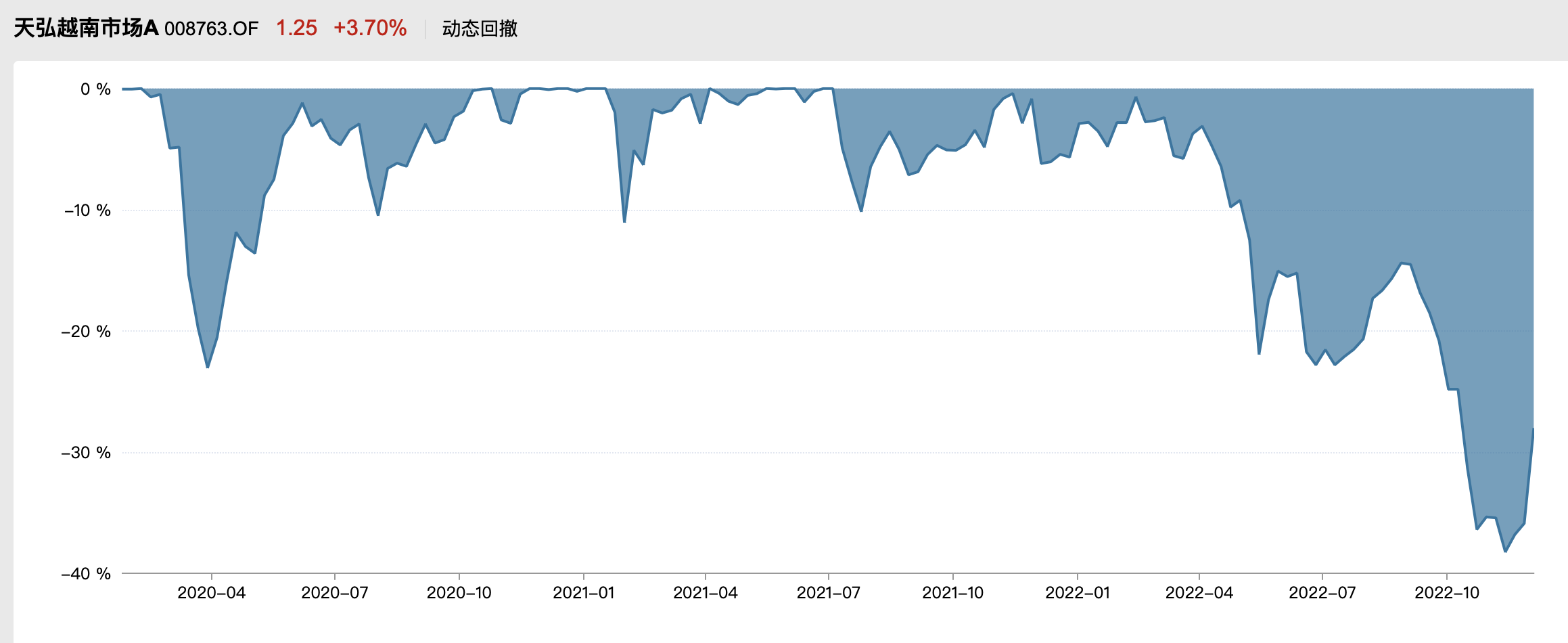 國(guó)內(nèi)目前一只布局越南的QDII——天弘越南市場(chǎng),今年以來跌幅已有23.17%(截至12月5日),11月較前期高點(diǎn)的回撤超35%。而該基金去年的漲幅高達(dá)40%,位列QDII基金第二位。