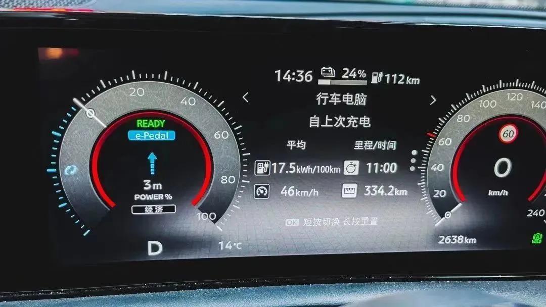 所以在我到達(dá)高速收費(fèi)站時(shí)已經(jīng)行駛快80公里,電量反而落到僅24%,即便下山路讓能耗回到17.5kWh/100km,但ARIYA艾睿雅給出的預(yù)估續(xù)航也只剩112km--距離我計(jì)劃中的終點(diǎn)蒲江服務(wù)區(qū),還有135km。
