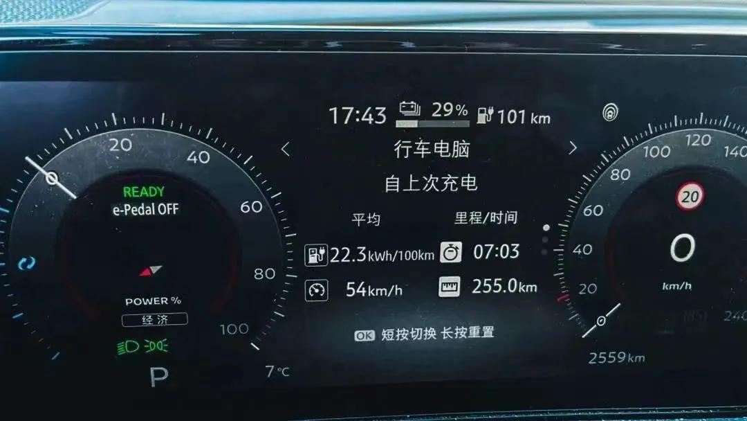 而且我還關(guān)掉了本身很節(jié)能的熱泵空調(diào),改用電加熱方向盤和座椅。