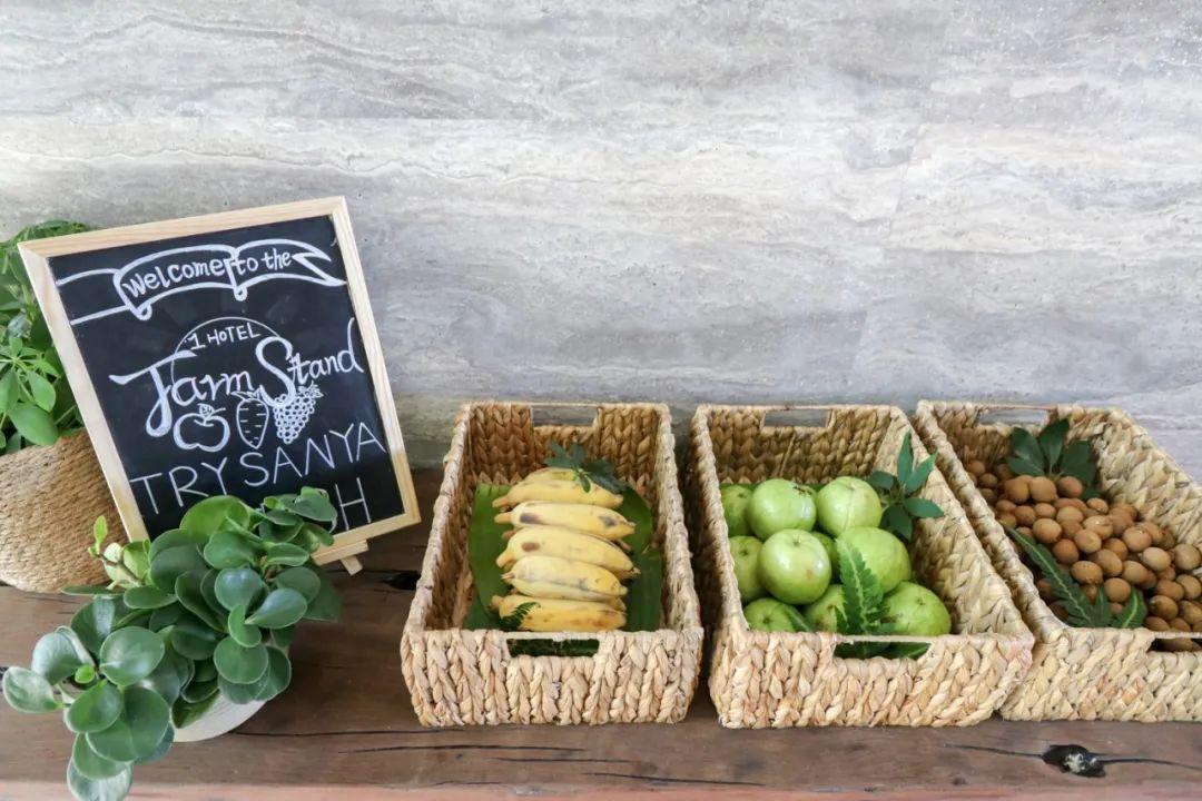 大堂入口的右手邊還有一個(gè)農(nóng)果站,是1 Hotels的品牌特色。所提供的時(shí)令水果或來(lái)自當(dāng)?shù)剞r(nóng)民、供應(yīng)商,或來(lái)自距酒店10分鐘車程,面積達(dá)18萬(wàn)m2的自營(yíng)農(nóng)場(chǎng)陽(yáng)光18°,只要是住店客人每天都能免費(fèi)享用。