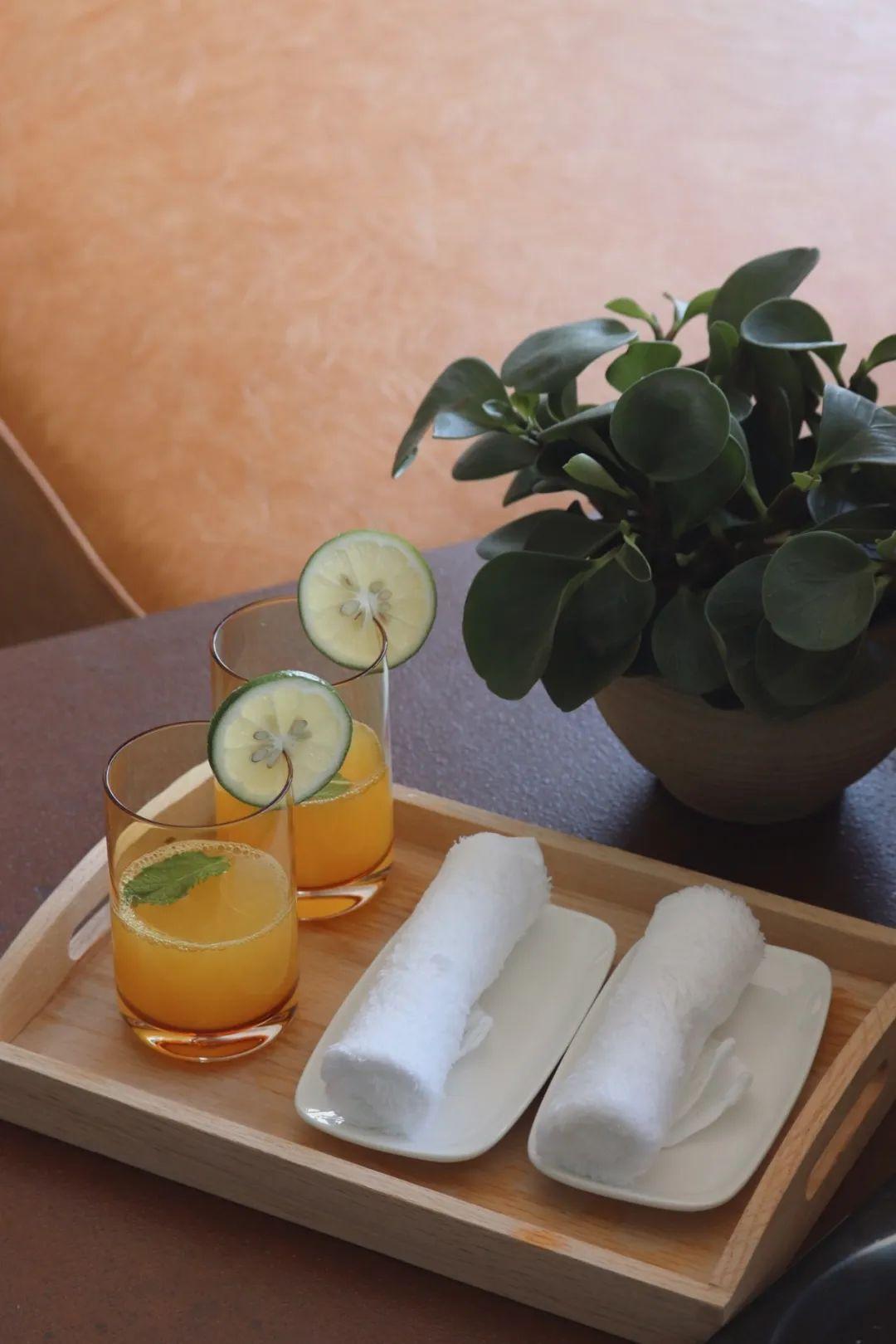 辦理入住的同時(shí),前臺(tái)工作人員會(huì)貼心地遞上用百香果特調(diào)的歡迎飲料和混著香茅精油的冰毛巾,還會(huì)給你掛上一條極具海南特色,融合了貝殼和椰雕的項(xiàng)鏈,很好看,是秋冬時(shí)節(jié)可以當(dāng)毛衣鏈的那種款式,可是我后來(lái)居然落在了房間沒(méi)拿……