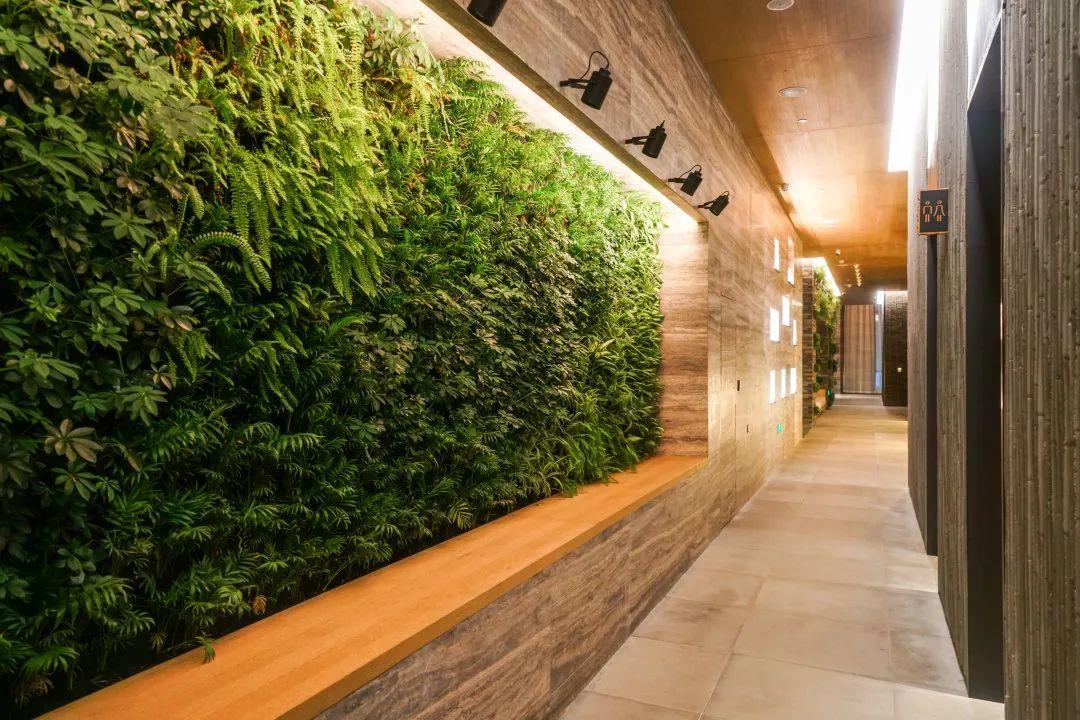 盥洗室入口處生機(jī)勃勃的綠植墻
