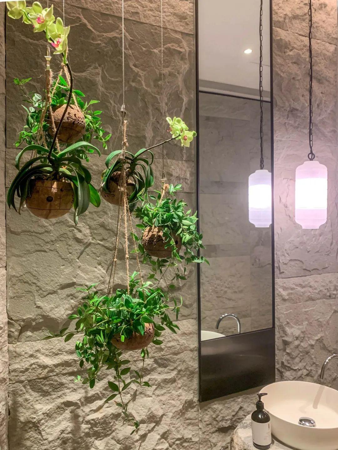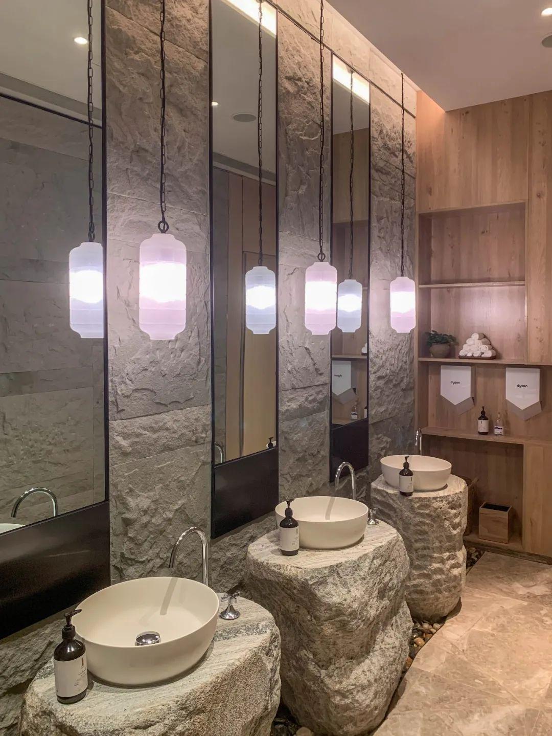 辦完入住的路上我還上了個(gè)廁所,大堂的公共盥洗室都可以精致得像一個(gè)小溫室——椰殼成串的綠植小景、鵝卵石托起的臺(tái)盆,還高配兩臺(tái)戴森干手器。