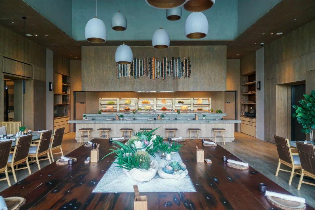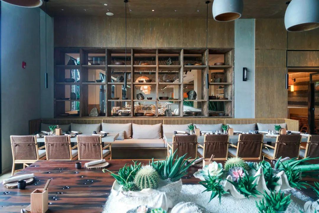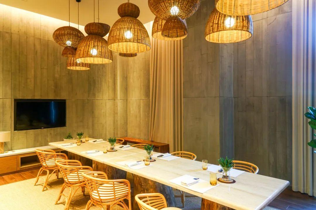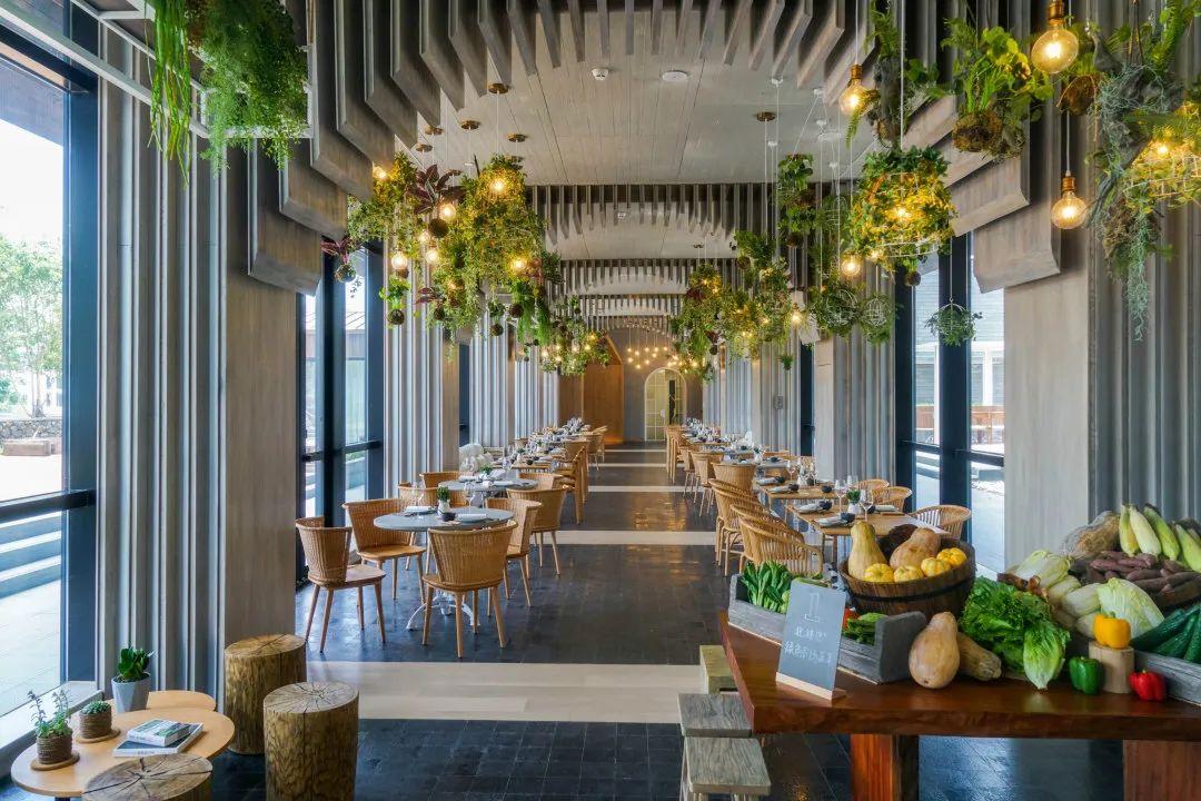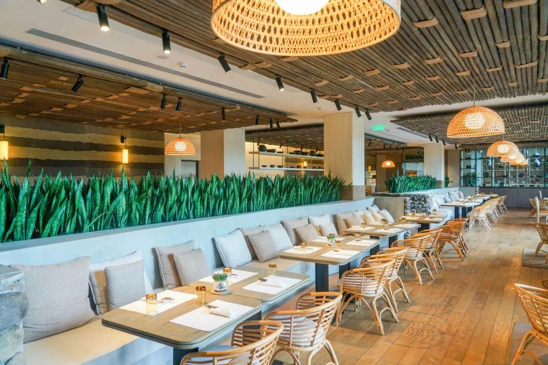 酒店設(shè)有多處各具特色的餐廳和酒吧。壹廚位于主樓1層,室內(nèi)風(fēng)格與酒店的整體基調(diào)相互映,鵝卵石、枯木裝飾、藤編燈飾、麻繩座椅,以及無(wú)處不在的綠植等元素均悉數(shù)呈現(xiàn)。