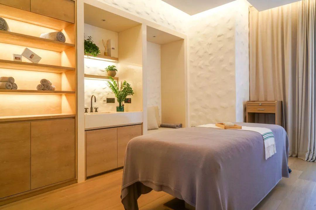 因此,并不是喜歡陌生人在身上按來(lái)按去的我決定約個(gè)SPA。1 Hotels的SPA與英國(guó)天然有機(jī)品牌Bamford合作。純白的接待處墻面模仿了鵝卵石的紋理。水泥灰的前臺(tái)在燈帶的裝點(diǎn)下散發(fā)著幽光。麻繩團(tuán)成的吊頂星光點(diǎn)點(diǎn)。