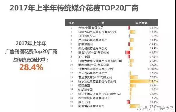 而這兩大巨頭在中國市場同樣舍得投入。據(jù)CTR的統(tǒng)計顯示,在2017年上半年傳統(tǒng)媒介花費(fèi)TOP20廠商排行榜中,寶潔位列第一,聯(lián)合利華在第7位,另外歐萊雅集團(tuán)位列第5,一家上榜的本土日化企業(yè)——納愛斯集團(tuán),排在第16位。